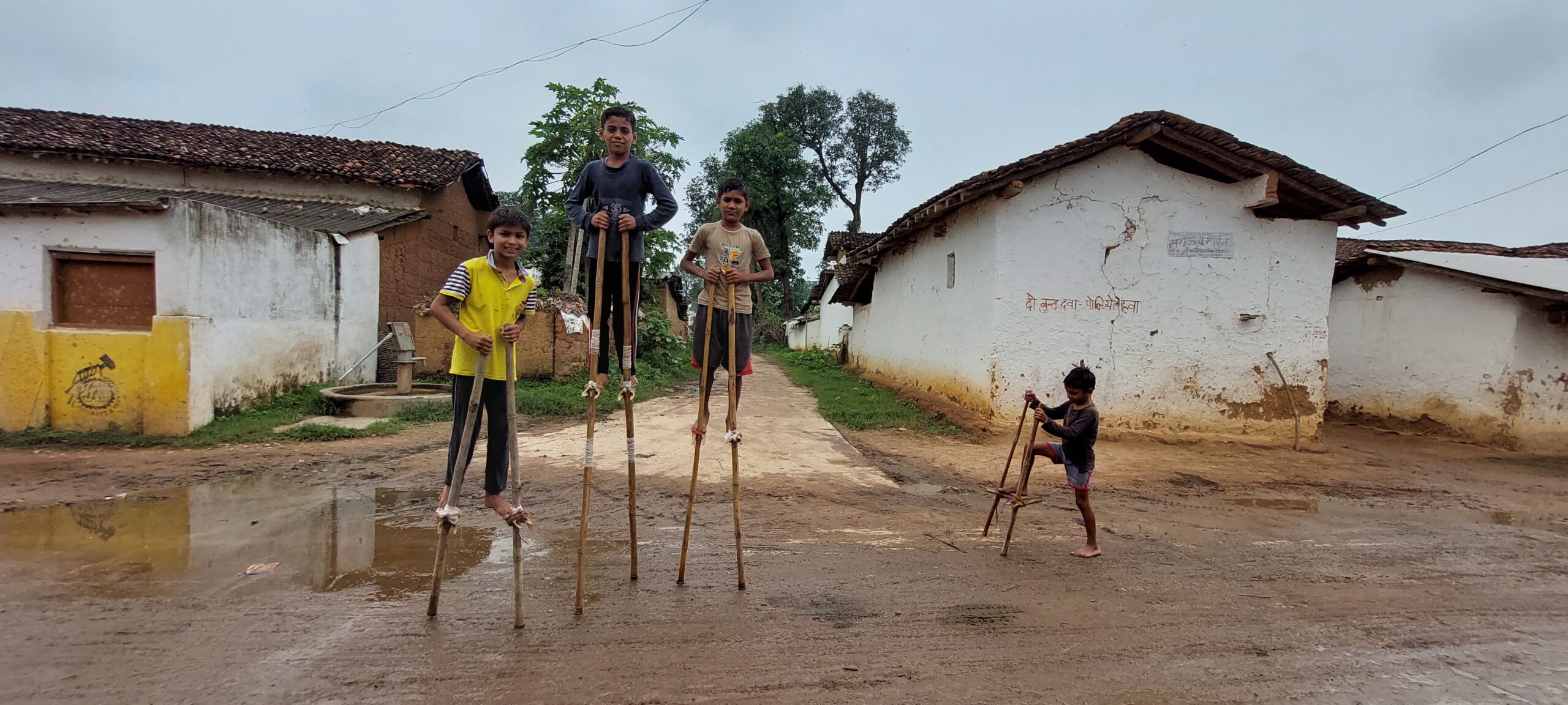 (if you can’t see the image, it’s of four children standing on their handmade Bamboo stilts)